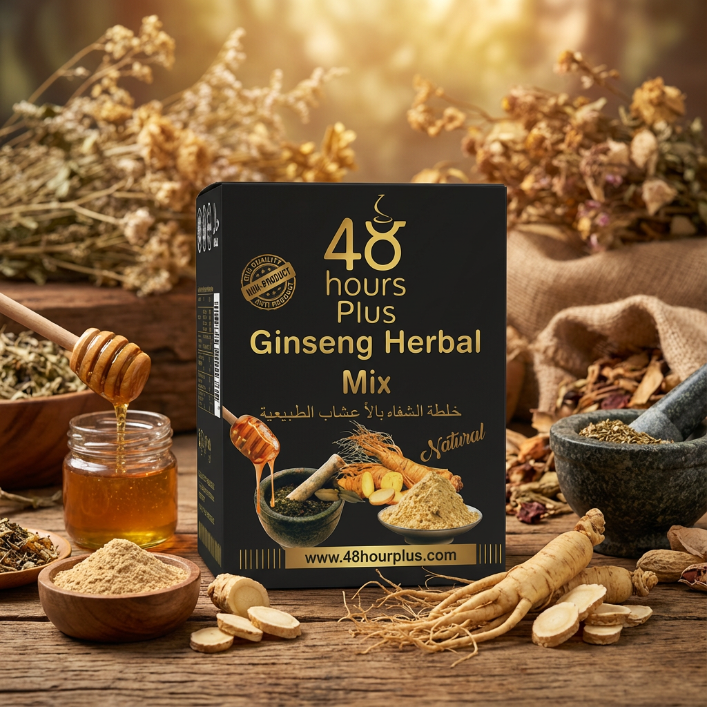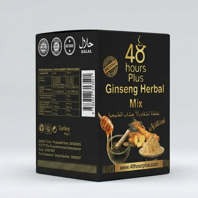 48 Hours Plus جینسنگ ہربل مکس – قدرتی توانائی کا پریمیم امتزاج (200 گرام)